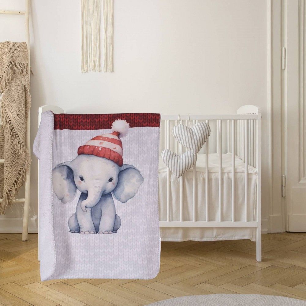 Бебешкото одеяло Слонче с коледна шапка е чудесен избор за по-малките. С размер 75/120 см, това одеяло ще обвие вашето бебе в уют и топлина, докато детето се наслаждава на забавния дизайн със слонче, носещо весела коледна шапка. Лесно за поддържане и антиалергично, то е изработено от 100% полиестер, което го прави идеално за всекидневна употреба през зимата. Един страхотен коледен подарък, който ще носи радост на всяко малко същество!