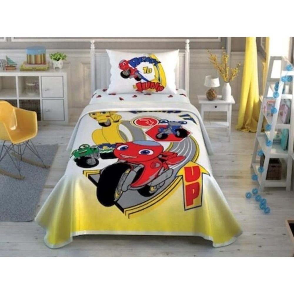 Представяме ви детския спален комплект RICKY ZOOM, изработен от 100% турски памук, който предлага високо качество, мекота и устойчивост. Създаден с грижа за вашето дете, този комплект се отличава с най-високите стандарти за удобство и безопасност. Долният чаршаф разполага с ластик, който осигурява удобно поставяне и фиксиране върху матрака. Придружен е от леко шалте, което е идеална алтернатива на тежките завивки през пролетта и лятото или може да бъде използвано като допълнителна завивка за зимните нощи. Изработено е от качествена памучна материя с техника "пике", която придава допълнитечни мекота, обем и комфорт. Дизайнът е впечатляващ принт на героя RICKY ZOOM, който ще зарадва вашето дете и му създаде радостна обстановка в стаята. Нашите продукти са тествани и сертифицирани по стандарта Oeko-Tex Standard 100, което гарантира, че са свободни от вредни вещества и подходящи за деликатната детска кожа. Разнообразният и издръжлив RICKY ZOOM спален комплект предлага естествено дишащи свойства, които гарантират приятни и безгрижни сънища за вашето дете. Осигурете му комфорт и уют с този висококачествен продукт, който е съчетание от стил, функционалност и безопасност. Комплект от 3 части включва:
