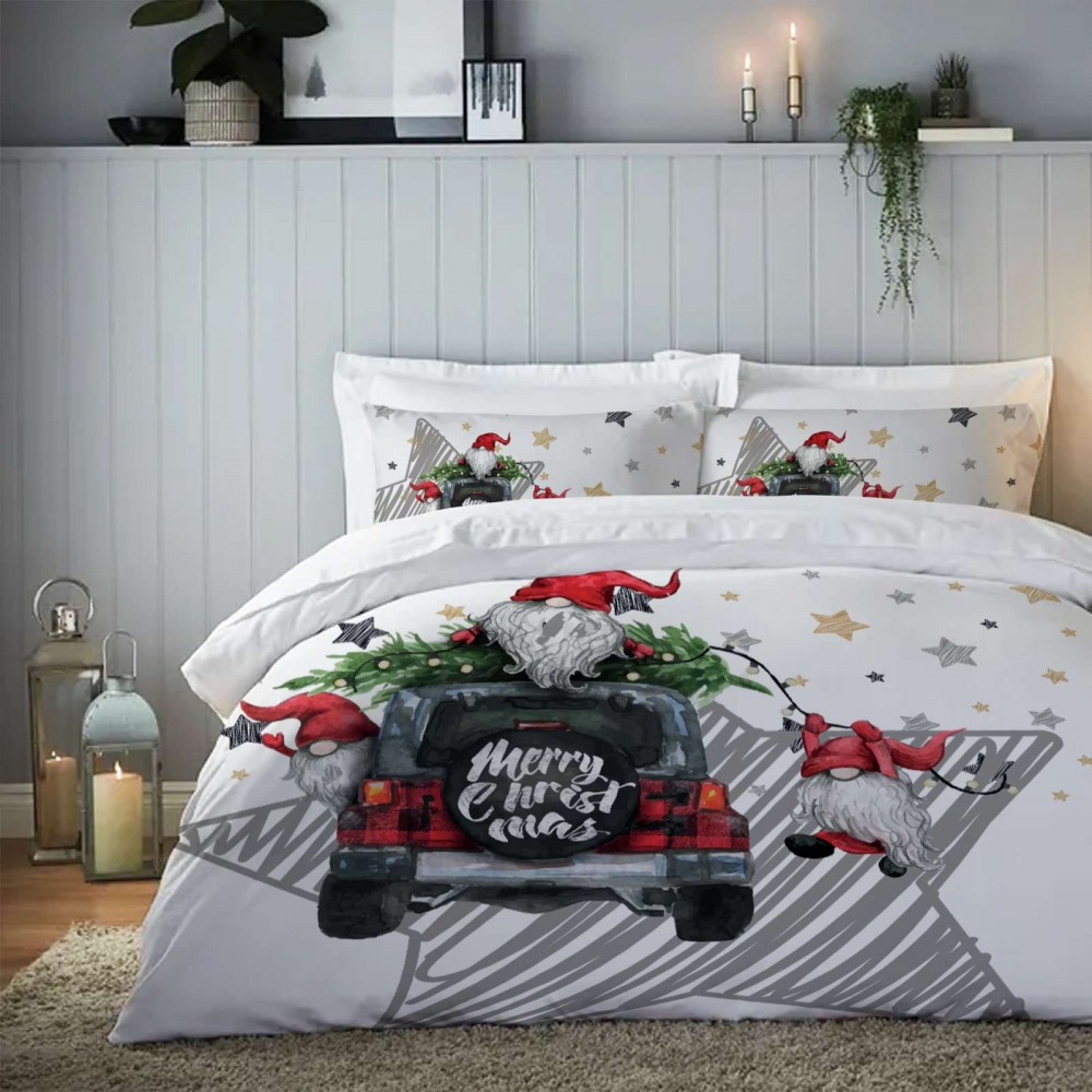Комплект спално бельо "Джуджета" е изработен от висококачествен памук ранфорс с весел коледен дизайн с дигитален печат. Спалните комплекти изработени с тази технология притежават изображения с фотографско качество и изключителна устойчивост на цветовете при изпиране. Платът остава мек при допир и не променя качествените си характеристики.