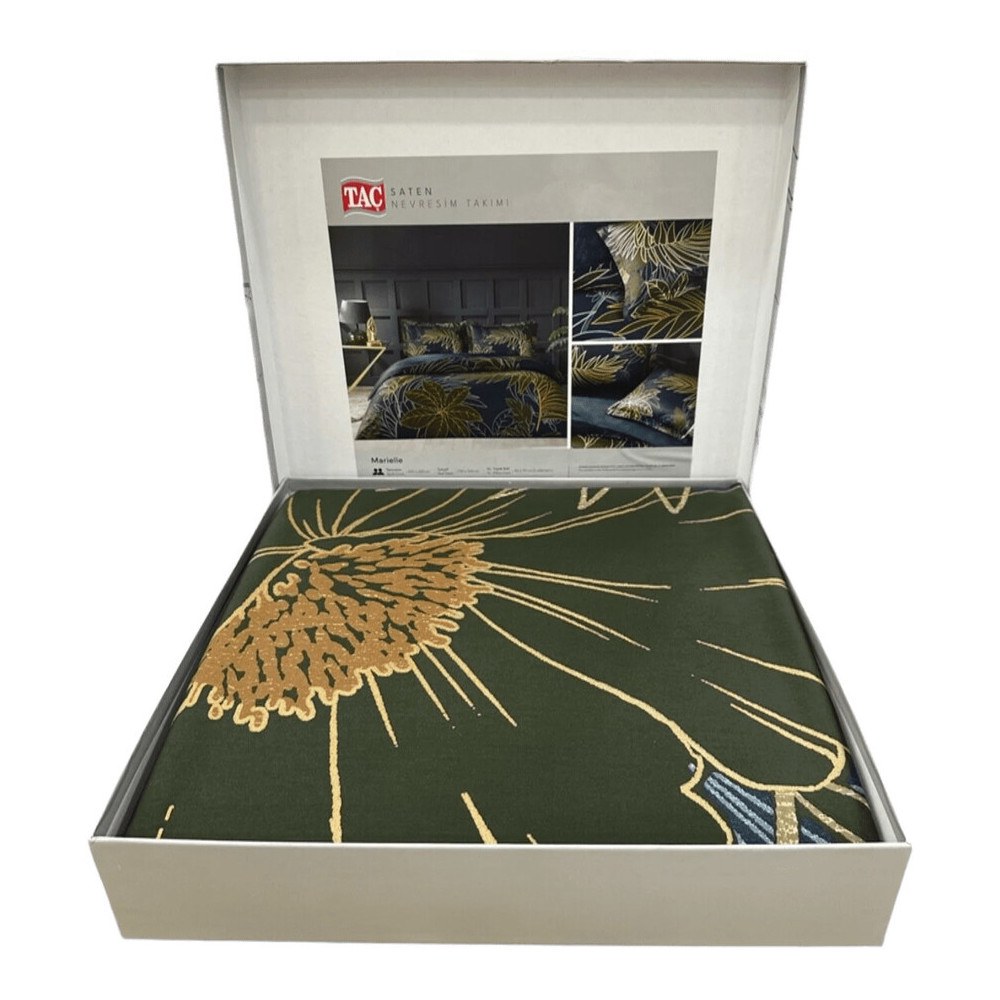 Спалният комплект "MARIELLE" от TAC ще внесе елегантност и комфорт във вашата спалня. Изработен от качествен памучен сатен, този комплект предлага перфектна комбинация от лукс и уют за вашето легло.