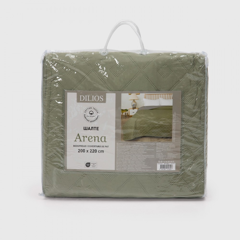 Това шалте предлага двулицев десен, който ви дава възможност да внесете разнообразие в интериора на вашата спалня, като просто смените страната. Независимо от предпочитанията ви, можете лесно да изберете между свежото зелено или спокойното сиво, създавайки нова атмосфера в спалното помещение.