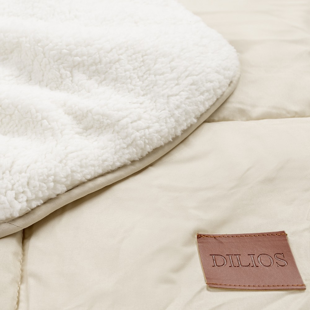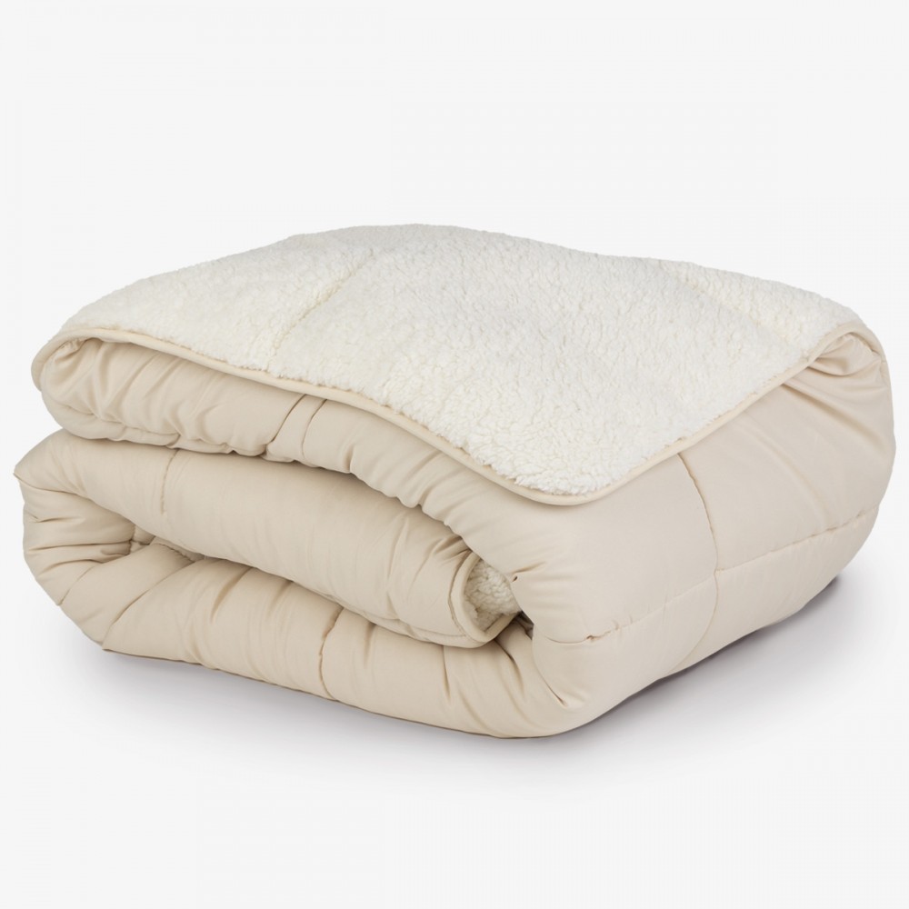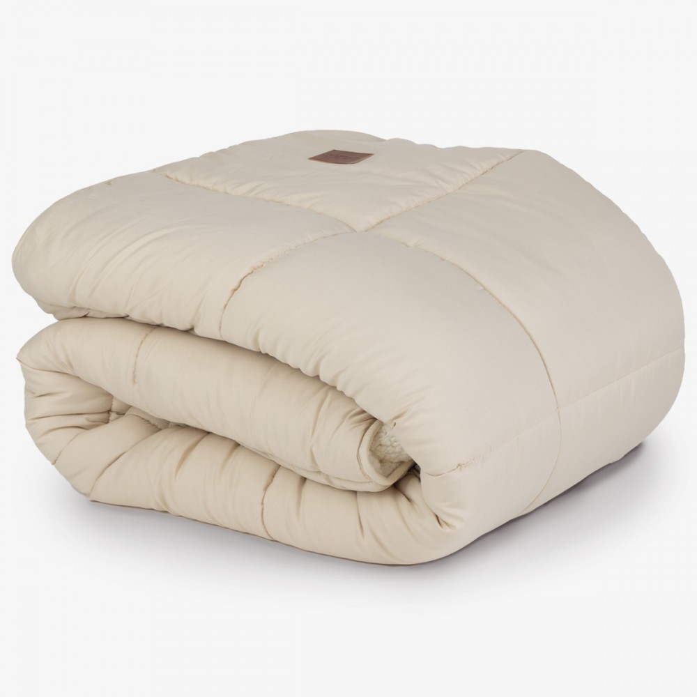 Олекотената завивка Шерпа с разкошен модерен дизайн е идеалният избор за есенно-зимните дни! Тази завивка съчетава изключителна мекота и пухкавина, благодарение на капитонираната лицева част в бежов цвят и уютната бяла шерпа, която осигурява отлични термо свойства.