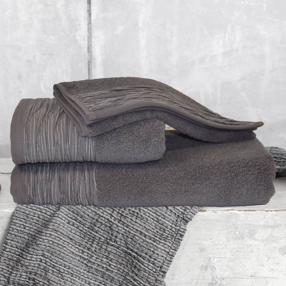 Хавлиената кърпа Аида с размер 70/140 см е отлично решение за тялото след баня или душ. Произведена от 100% памук, тя е мека, здрава и попива влагата ефективно. Отличителен елемент на дизайна е широката декоративна лента с фино тъкан релефен мотив в долната част, която придава естетика и завършен вид. Сивият цвят добавя стилен акцент в интериора на банята. Кърпата може да се комбинира с останалите продукти от серия Аида за цялостен текстилен комплект.