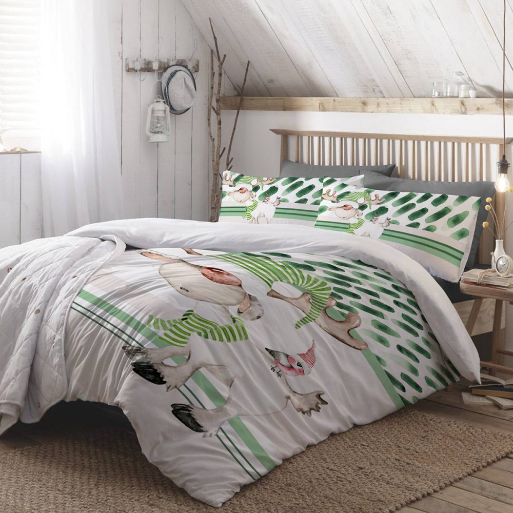 Коледният спален комплект за спалня "Елен" е чудесен избор за тези, които искат да внесат празнична магия и уют в дома си. Направен от 100% памук, този комплект е подходящ за двойно легло и ще добави топлина и стил в спалнята. Декорацията с еленче и зимни мотиви ще създаде незабравима атмосфера, идеална за коледните празници.