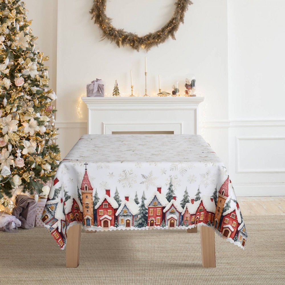 Коледната покривка за маса 150/200 см е перфектният избор за трапезни маси, които искате да украсявате с празнично настроение. Изработена от 100% полиестер, тя е устойчива на петна, съхне бързо и е изключително мека на допир. С разнообразието от коледни десени, които предлагаме, ще можете да изберете идеалната покривка, която да се впише в интериора на вашата трапезария. Тази покривка е подходящ избор за коледен подарък, който ще радва близките ви с удобство и празничен дизайн.