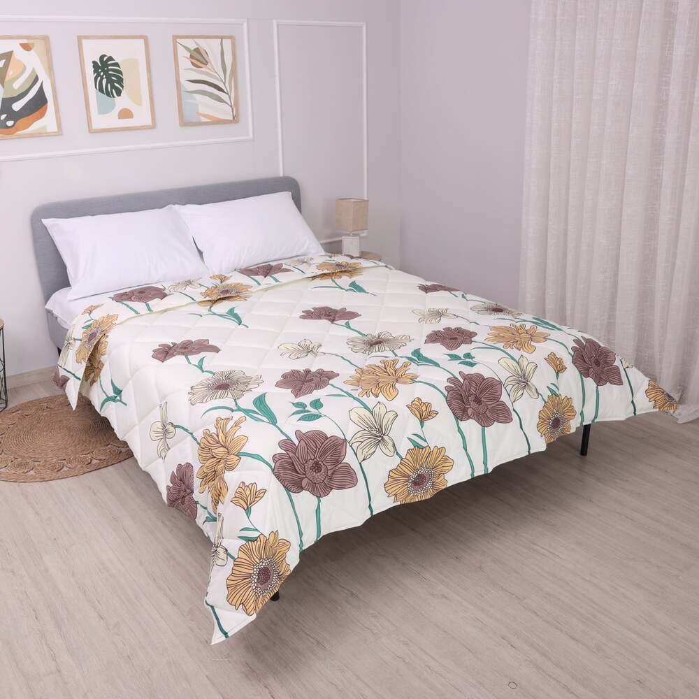 Зимната олекотена завивка „Мирабел Алия“ предлага стил и уют с елегантния си дизайн, вдъхновен от арт деко стила. Бежови и кафяви цветя върху светъл екрю фон създават нежна и изискана атмосфера в спалнята, като придават топлина и модерност на всяко единично легло.