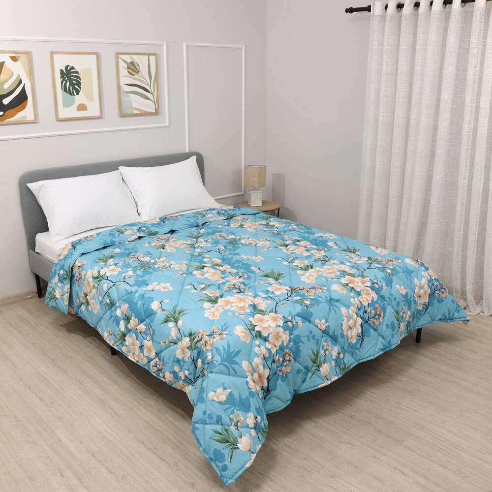 Зимната олекотена завивка „Амелия“ е идеалният избор за тези, които търсят комфорт и стил през студените месеци. С нежен флорален мотив в пастелни розови и неутрални тонове върху светлосин фон, тя придава елегантност и свежест на всяко пространство. Леката и изтънчена структура осигурява перфектен баланс между топлина и комфорт, без да добавя излишна тежест.